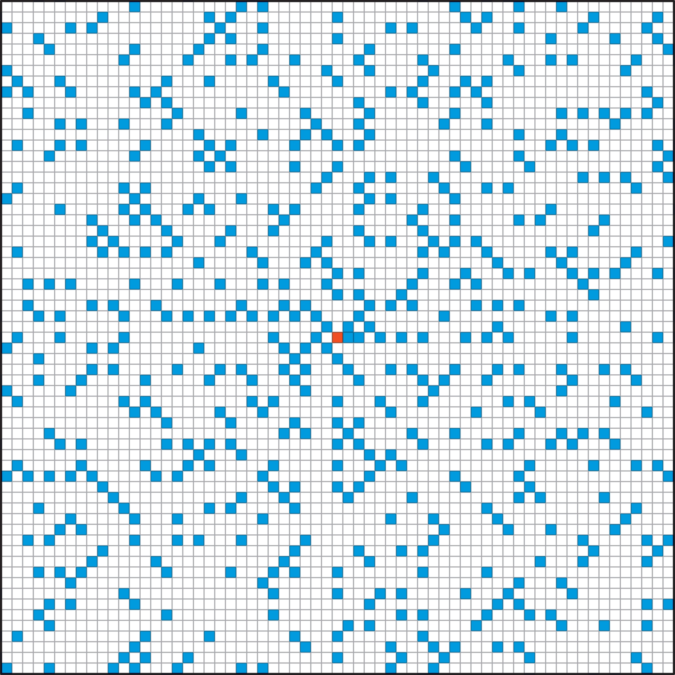 Возьмём клетчатый лист и занумеруем все клетки по спирали: какой-то центральной клетке дадим номер 1, клетке справа — 2, клетке над ней — 3 и т. д., двигаясь вокруг клетки «1». Если закрасить клетки, номера которых — простые числа, то получится затейливый точечный узор, который и называется скатертью Улама, в честь впервые нарисовавшего его математика Станислава Улама.