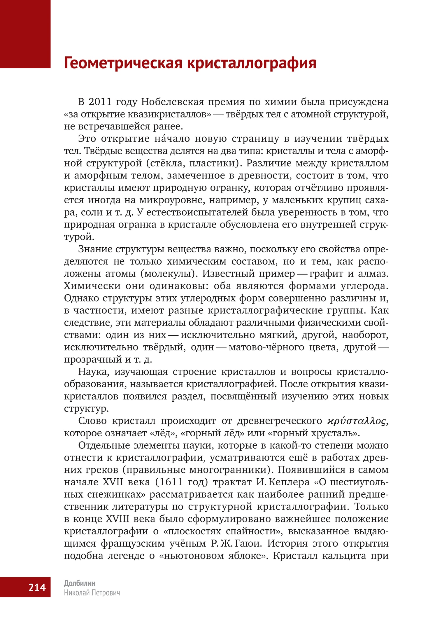 В 1982 году в лаборатории израильского физика Д. Шехтмана был получен сплав алюминия и марганца, структура которого имела отчётливую осевую симметрию пятого порядка… Через три десятилетия это открытие было отмечено Нобелевской премией по химии «за открытие квазикристаллов».