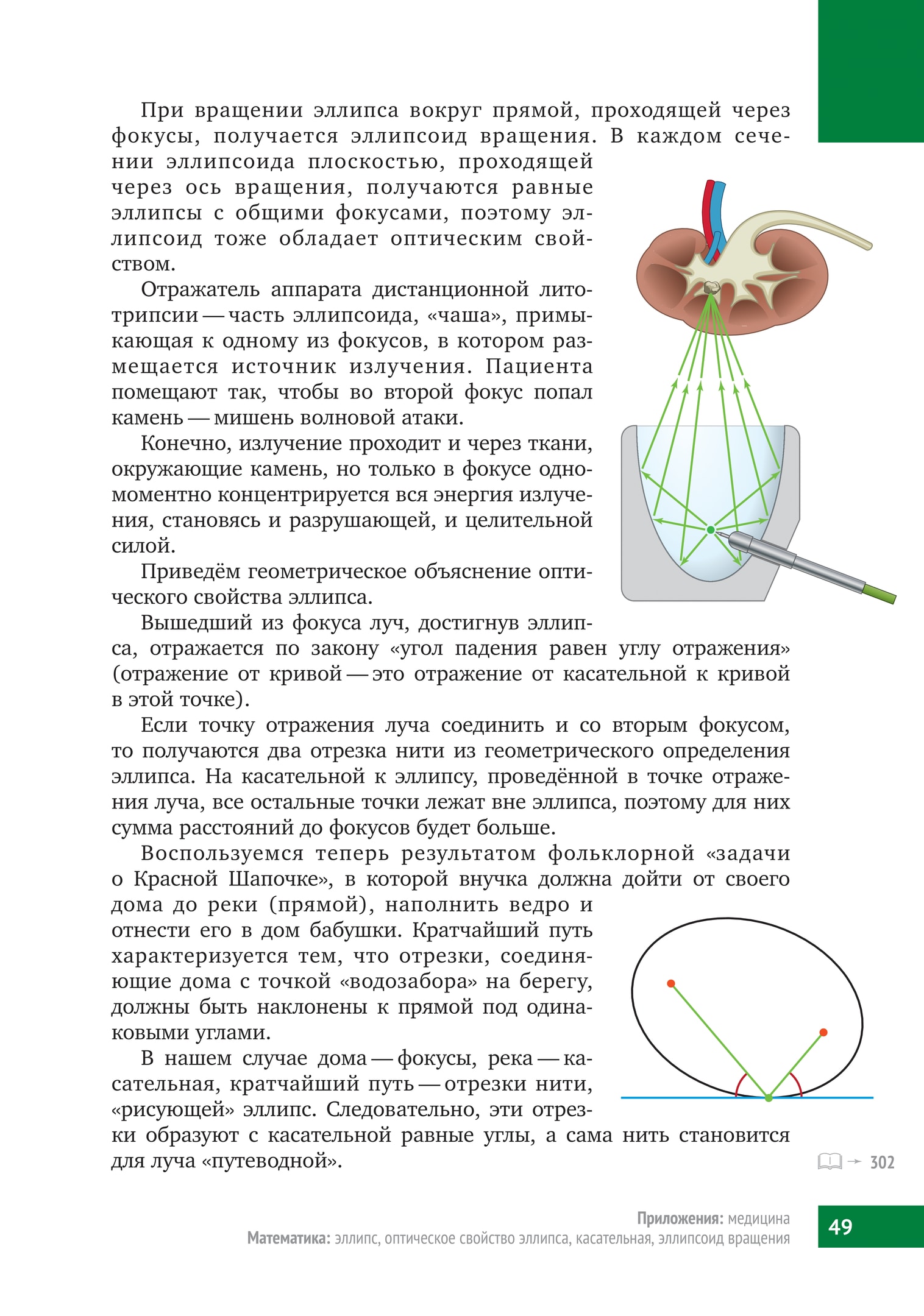Именно это оптическое свойство эллипса используется в дистанционной литотрипсии.