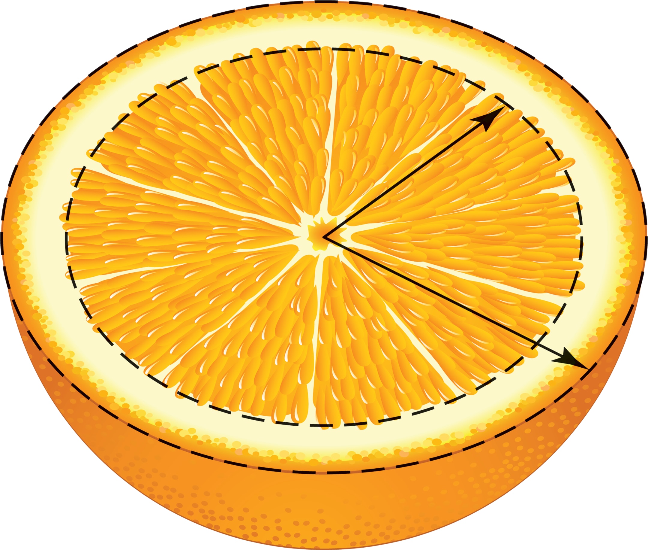 Вопрос кажется странным, ведь кожура — это тонкий слой, край апельсина (будем считать, что апельсин имеет форму шара). Оказывается, что относительно тонкий слой на границе шара имеет тот же объём, что и вся остальная часть. Например, у апельсина диаметром 10 см c кожурой толщиной 1 см почти половина всего объёма сосредоточена в кожуре!